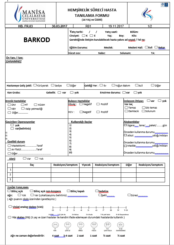 11. HEMŞIRELIK TANILAMA SÜRECINE ILIŞKIN 0-18 VE 18+ YAŞ GRUPLARINA AYRI PLANLANMAK SURETIYLE FORMLAR GÜNCELLENMIŞ HASTANEMIZE ÖZGÜ VE MEVZUATA UYGUN DÜZENLEMELER YAPILMIŞTIR.