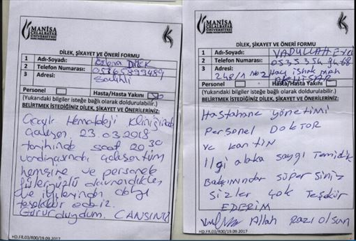 6. HASTANE IÇERISINDE 15 AYRI NOKTADA ŞIKAYET/ÖNERI KUTULARI KONUMLANDIRILMIŞTIR. BU ALANLARDA YAPILAN BILDIRIM DEĞERLENDIRMELERI AYLIK PERIYOTLARDA ÖNERI/ŞIKÂYET EKIBI TARAFINDAN DEĞERLENDIRILMEKTE IYILEŞTIRME ÇALIŞMALARI DÜZENLENMEKTEDIR. İLETIŞIM BILGILERI BULUNAN BILDIRIMLERE ILIŞKIN MESAJ YOLU ILE DÖNÜŞ YAPILMAKTADIR.
