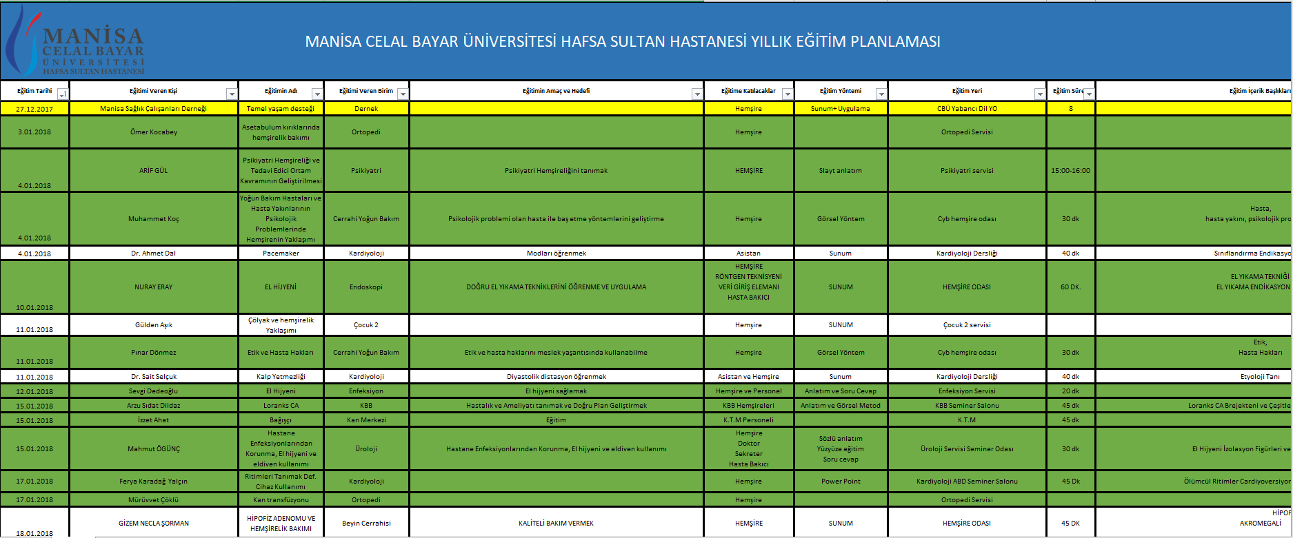 2. BIRIMLERIN DÜZENLEMIŞ OLDUĞU EĞITIMLER TEK BIR PLATFORMDA TOPLANARAK YILLIK EĞITIM PLANI HAZIRLANDI. OLUŞTURULAN PROGRAM SAYESINDE; PERSONELIN EĞITIME KATILMA ORANLARI, EĞITIMLERIN PLANLANDIĞI ZAMANDA YAPILMA ORANLARI HESAPLANARAK GEREKLI IYILEŞTIRME ÇALIŞMALARI YAPILMAKTADIR. HASTANE ÇALIŞAN TÜM PERSONELE YÖNELIK HIZMET IÇI EĞITIM PROGRAMI DÜZENLENEREK, 1326 PERSONEL KATILIMI ILE %88’LIK KATILIM ORANI SAĞLANMIŞTIR.